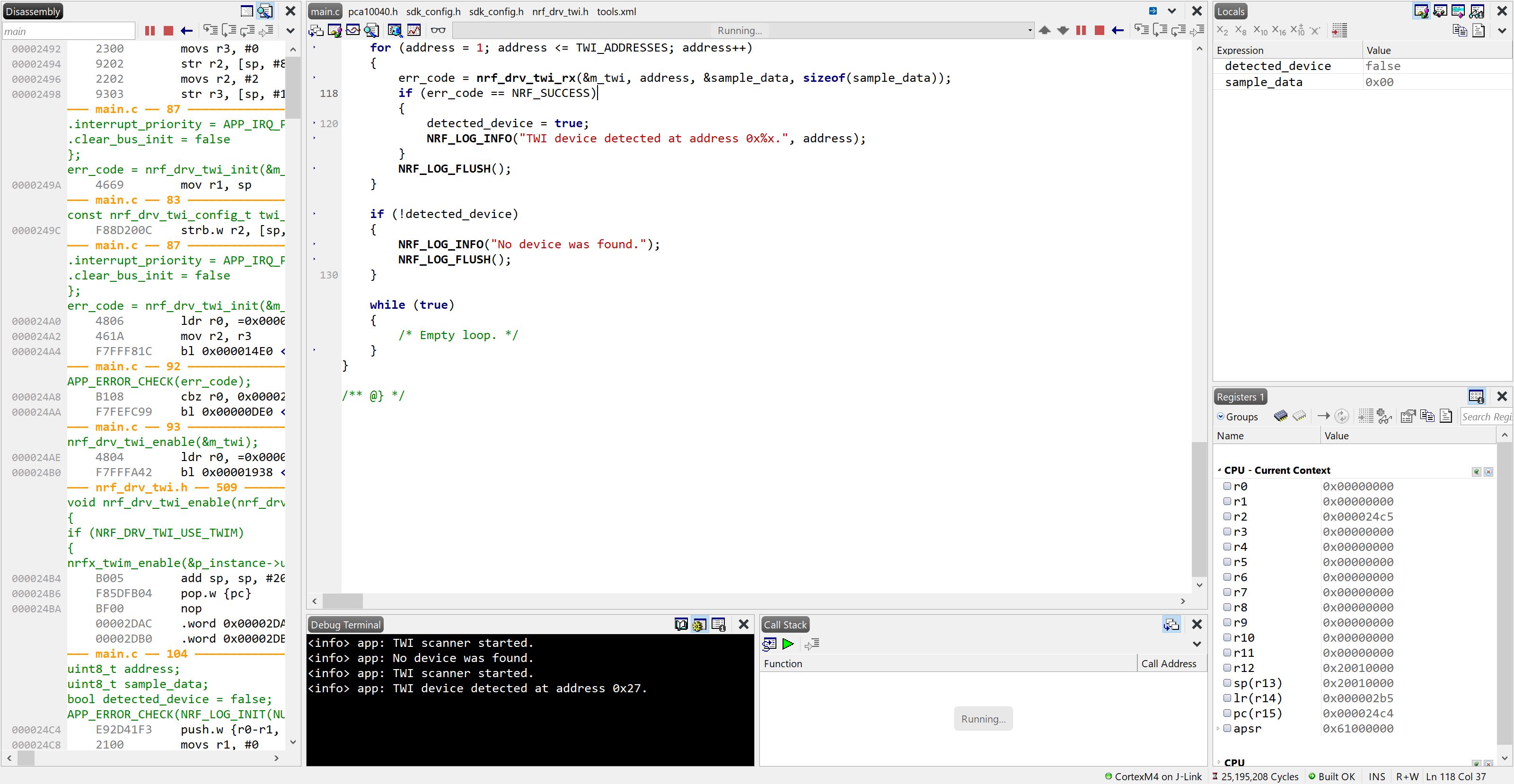 Segger Embedded Studio is a lightweight IDE that is used for Nordic devices. Getting logging to work with the 15.3 SDK has been a long journey though, so I thought I might write down my process in getting the debug terminal to print out RTT messages. Ensure flags have been set Ensure that RTT logging has been enabled in sdk_config.h: #define NRF_LOG_BACKEND_RTT_ENABLED 1 and #define NRF_LOG_ENABLED 1 Use the correct sdk_config.h For some reason the example code for the TWI scanner did not work for me, and copy-pasting code from TWI sensor for the sdk_config.h file worked. Check by launching Segger RTT viewer. If the flags have been set and the correct config file is used, then you should start to see some output. ...