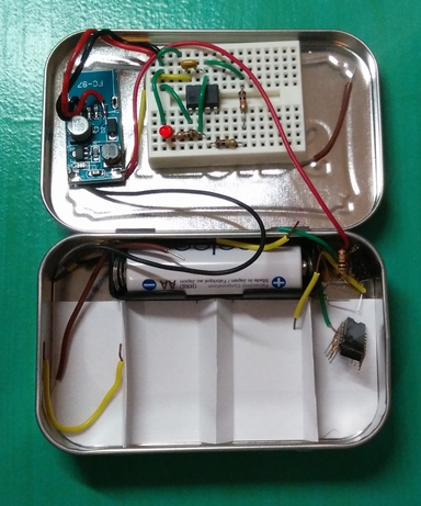 The original design was not powered because the author couldn’t find enough space to fit a battery in. But if our backstory is a post apocalyptic world we want to be able to close our kit and get moving any time we need to, because, y’know, can’t be too ready. So as a result we have to cut most of the leads short in order to close it properly and have wires do the rest of the connecting for us. Because most IC’s that I’m interested in using are based on 5V logic, I included a cheap step-up circuit powered by a 1.2V rechargeable battery.