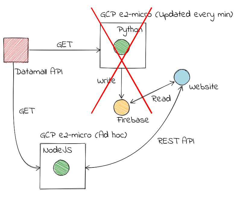 I took what I learned from building the first app and converted the code that called the Datamall API from Python into NodeJS, which is more suited to act as an API server. On top of the NodeJS server, I also put in place an API that allows the client to query for a specific bus stop. In summary, I moved the updating logic from the server (previously the server had to update a database for the client to read), to the client (now the client queries the server at a set rate).
