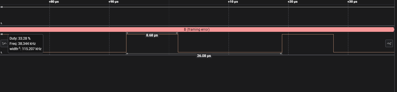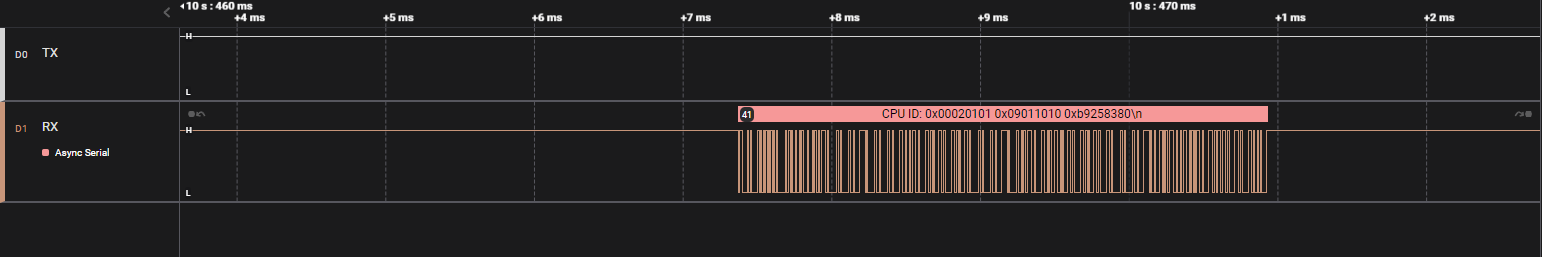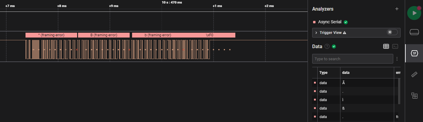 If we insert the serial analyzer without modifications, it reveals that there is a framing error.