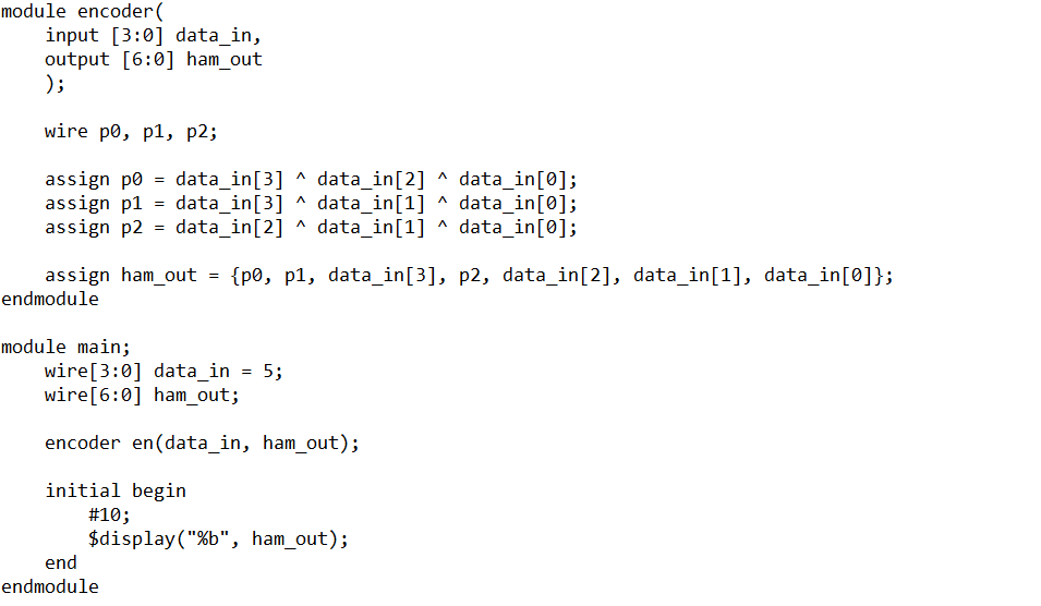 This describes a Hamming 7 4 encoder. A Hamming code is a self-correcting code that can correct one bit of data by comparing the calculated parity values vs the transmitted parity values. By doing so, it can tell you if there was an error and where the error would be.