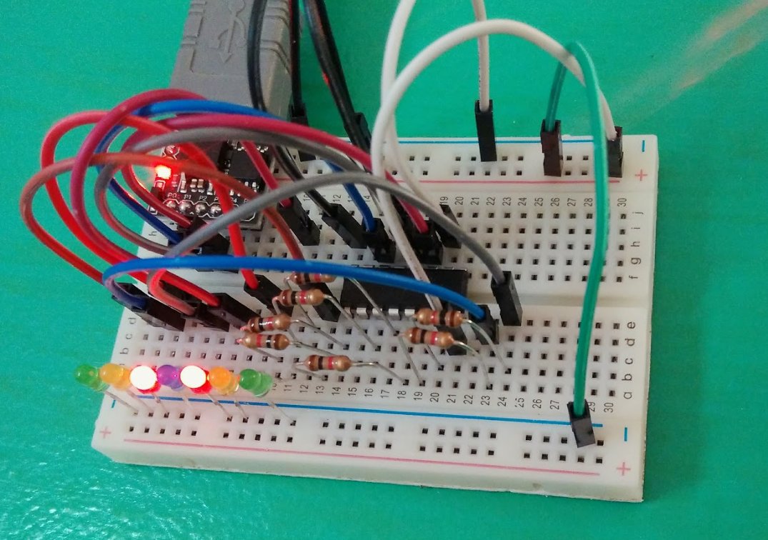 Now all you have to do is to is to connect the 595 chip to the microcontroller and you’re ready to go!