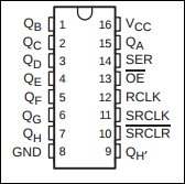 These images are sourced from the manufacturer’s datasheet. By examining the datasheet, you should be able to determine how each chip works. In our case, we know that Q is the outputs, and we want them enabled. This means that we have to set the pin OE to low, ie 0V.