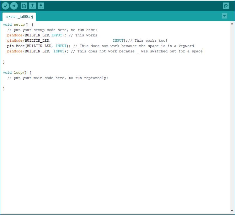 Note that whitespace in Arduino does not matter.