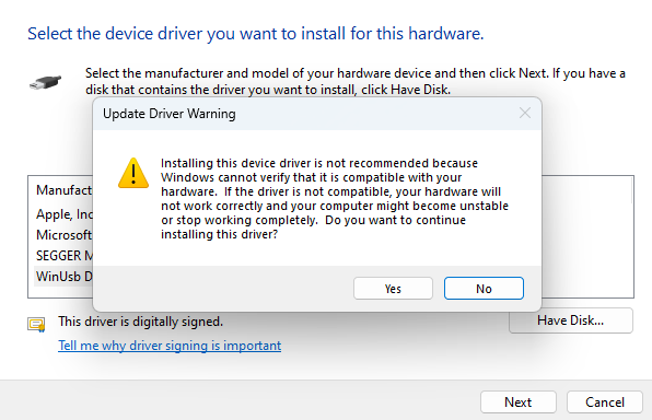- Disable driver signing on Windows.